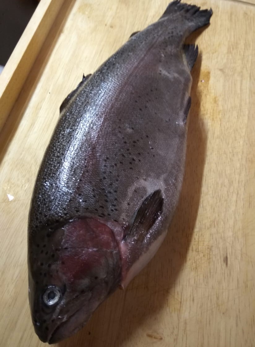 У нас в продаже имеется свежемороженая форель, не потрошеная, выловленная из студеных вод горной реки Нарын. Этот продукт отлично подойдет для приготовления различных диетических блюд. Форель выращивается в холодной воде, что благоприятно сказывается на ее качестве и вкусе, в отличие от чилийской форели, которая выращивается в теплых водах. В мясе форели можно найти икру, однако это не гарантировано.